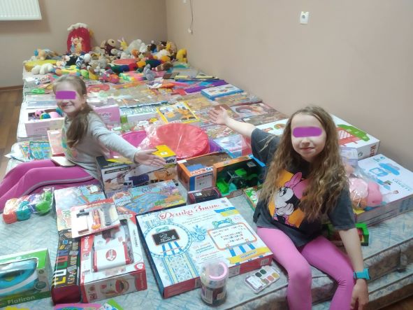 Ein weiteres Projekt das wir mit Freude unterstützen konnten, war eine Aktion in der Ukraine. Geflüchtete Kinder und Ihre Mütter sind in einem Kinder-Sanatorium in der West-Ukraine untergekommen. Hierfür wurde für die Geflüchteten Kinderspielzeug, Nahrungsmittel und Verpflegungsartikel benötigt.
